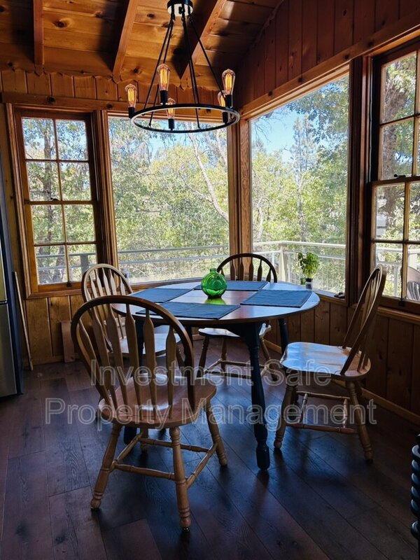 Move into this cozy Julian cabin available October 2025 to enjoy a scenic home that may even get snow! This 2 bed / 1 bath home offers ample and beautiful outdoor space with a private yard and a wrap around deck and great views from outside and inside with tons of windows. Enjoy a renovated kitchen with stylish cabinets, marble looking counters and backsplash, all new appliances, and a rollaway kitchen island alongside a dining nook and great living room with a wood burning stove! This home is a must see!
