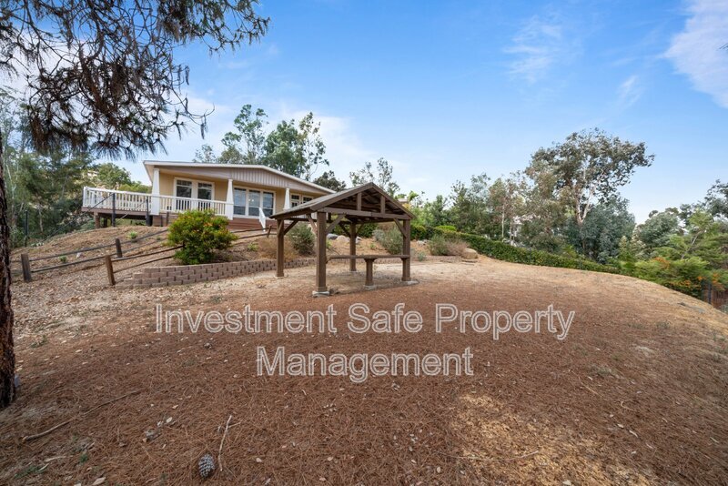 Come see everything that 2921 Sunset Hills has to offer including tons of yard space (approx. an acre of usable space) with bonus sheds for storage, a large open floor plan maximizing usable space, air conditioning, large master suite with ensuite bathroom featuring a soaking tub, a deco fireplace, built in shelves in the living room and closet and so. much. more! Nestled in the heart of wine country Escondido, this home has everything you need with privacy, space, and a luxury feel. This home boasts ceiling fans throughout, tons of windows with magnificent views for tons of natural light, and a wrap around porch! Make this must-see house your new home today!